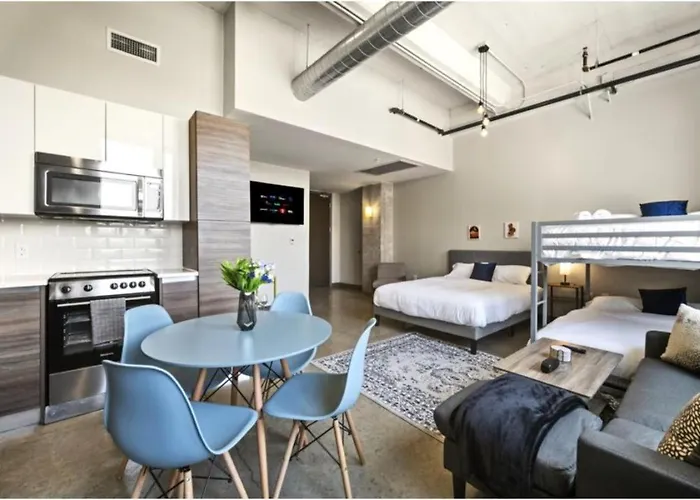 Twisted Root Burger Co offers guests the chance to dine on American delicacies in a bar, all located 550 meters from this spacious Beautiful Downtown Apartment With Parking, Laundry, & Pool. Another option is City Hall Bistro, where they can relish American dishes, located around 5 minutes' walk away.